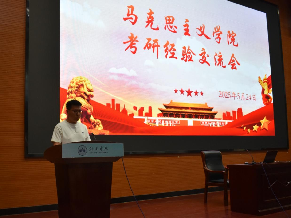 2025年5月24日下午14:30,马克思主义学院在知行楼二楼东学术报告厅成功举办了考研经验交流会。本次交流会邀请了2025届八位成功考取硕士研究生的优秀学子,与同学们进行面对面的交流与分享。张涛轩老师主持本次交流会。院长张兆平出席本次会议。 交流会上,张若欣、方冬、邱悦、赵沛博、郑皓月、张媛媛、徐晓玲、谢诗瑶八位优秀学子依次登台,从不同方面展开分享。 在择校方面,他们强调要综合考量自身实力、目标院校的报录比、考试难度等因素,...