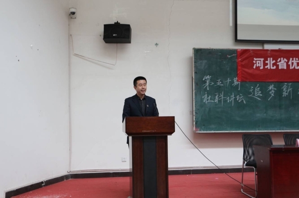 河北省优秀社工校园宣讲团前台入座苏献启教授代表马克思主义学院致辞
