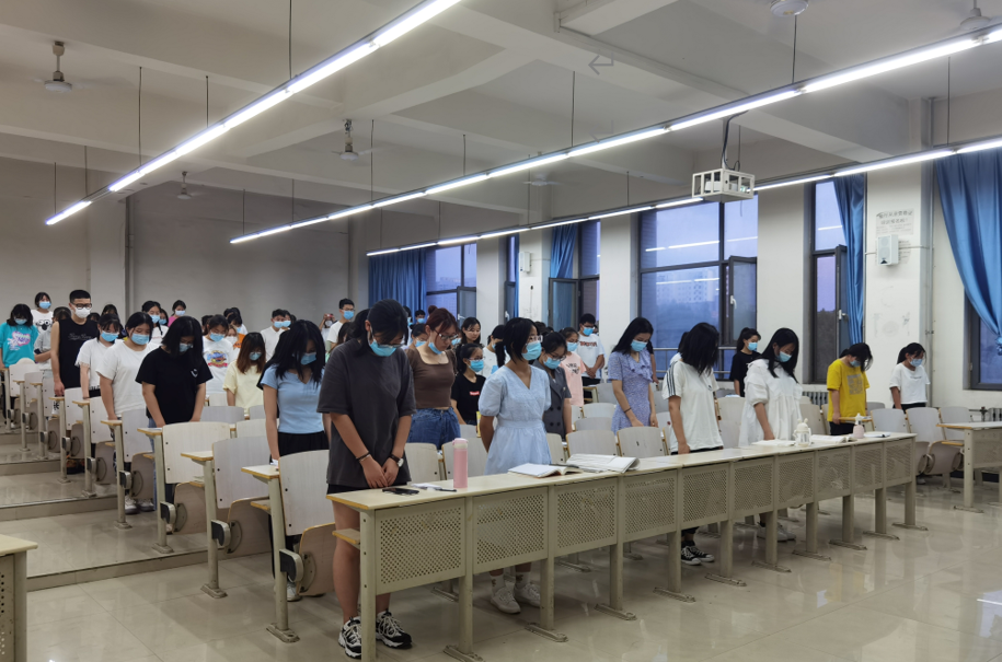 活动中,全体学生起立,面向袁老照片默哀三分钟,沉重悼念“共和国勋章”获得者、中国工程院院士、杂交水稻之父袁隆平先生。在沉重的默哀当中,全体学生向袁隆平院士表达了最深切的悼念和崇高的敬意。