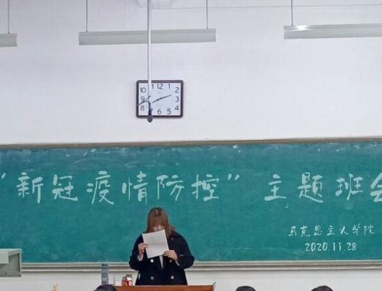 鉴于当前疫情有所反弹,根据校疫情防控领导小组要求,马克思主义学院于2021年11月28日在公教楼114教室组织开展了“关于新冠疫情防控”的宣传活动,马克思主义学院思想政治教育专业的同学参与了本次疫情防控活动。