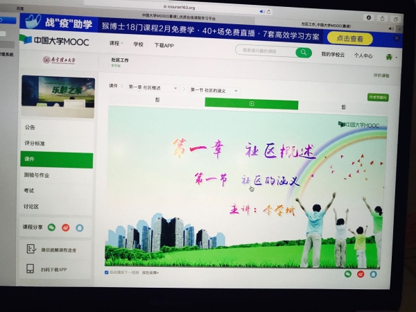 《社区工作》是非常重要的社会工作专业的必修课,32理论学时,32实践学时。社区工作课程旨在让学生掌握社区工作模式、方法和技巧,并能结合具体政策,解决社区问题,促进社区发展,做到理论联系实际,学以致用。疫情虽然多少对教学造成一定的影响,但对社区实践课也提供了一种便利,在以后的实践课里,同学们可以在自己居住的社区里开展各种实践活动,把学到的理论运用到实践中去。